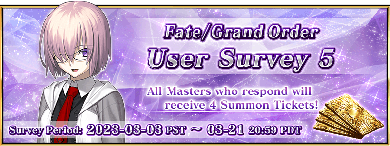 We would like to request your participation in the Fate/Grand Order User Survey 5.
