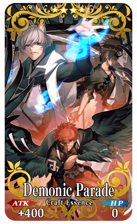 ★★★★SR Demonic Parade ATK 400 (MAX: 1500) HP 0 Skill Increase NP Charge by 1 level when using NP (1 time) & Critical Strength by 10% & NP Strength by 10% for yourself + Increase amount of Clock Tower Keychain per drop by 1 [Event Only]