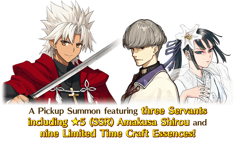 From Servants related to the Limited Time Event "Holy Grail Phantom Thief Amakusa Shirou and the Slapstick Museum", 18 Servants, including a Limited Time ★5 (SSR) Servant, and nine Limited Time Craft Essences will be featured as Pickup Servants and Craft Essences!