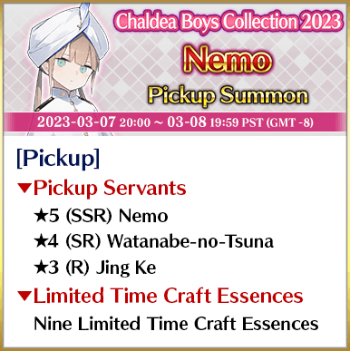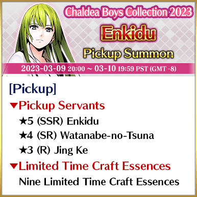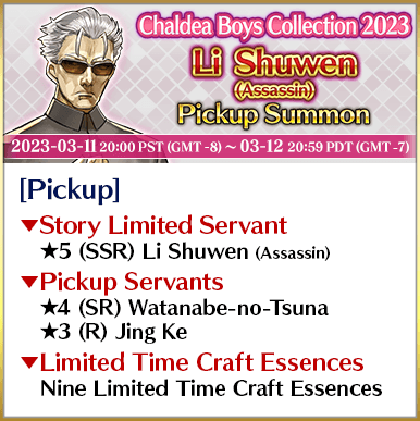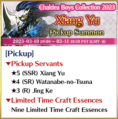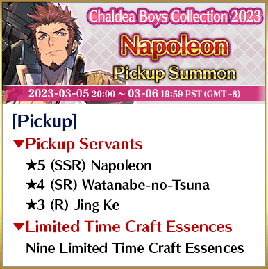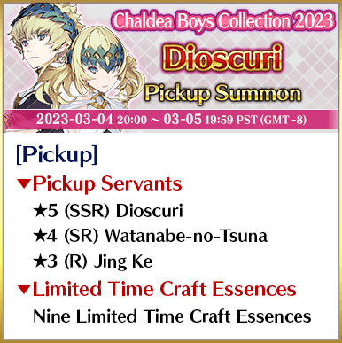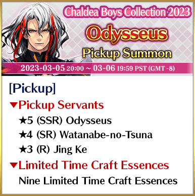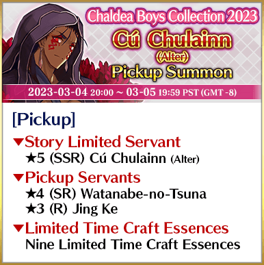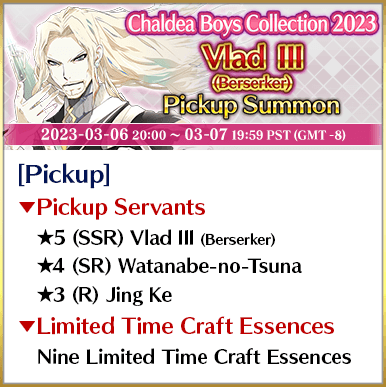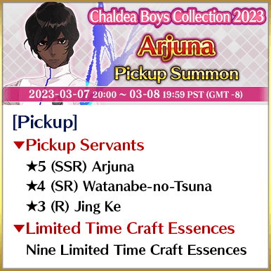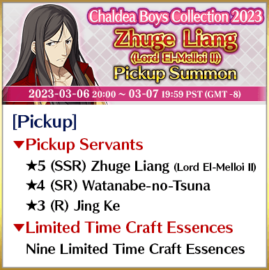 "Chaldea Boys Collection 2023 Pickup Summon" Period: