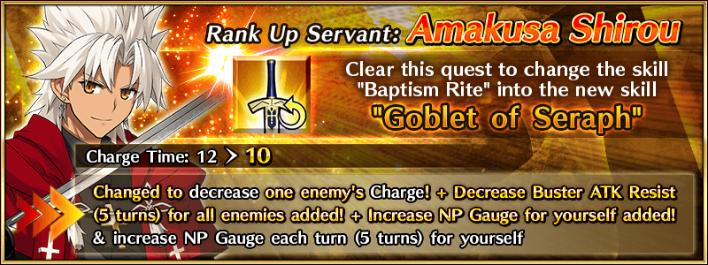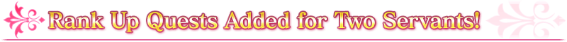 "Servant Rank Up Quests" to strengthen two Servants featured in this Pickup Summon, "★5 (SSR) Amakusa Shirou" and "★3 (R) Jing Ke", will be permanently added to Chaldea Gate.