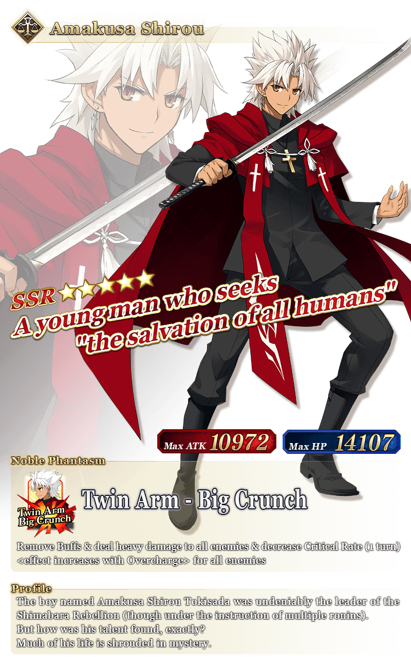 See "★5 (SSR) Amakusa Shirou" in action on YouTube, where we're sharing an exclusive video of his Noble Phantasm!