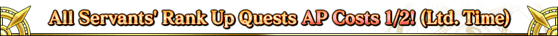 During the campaign period, all Servants' Rank Up Quests will have AP costs reduced to 1/2!