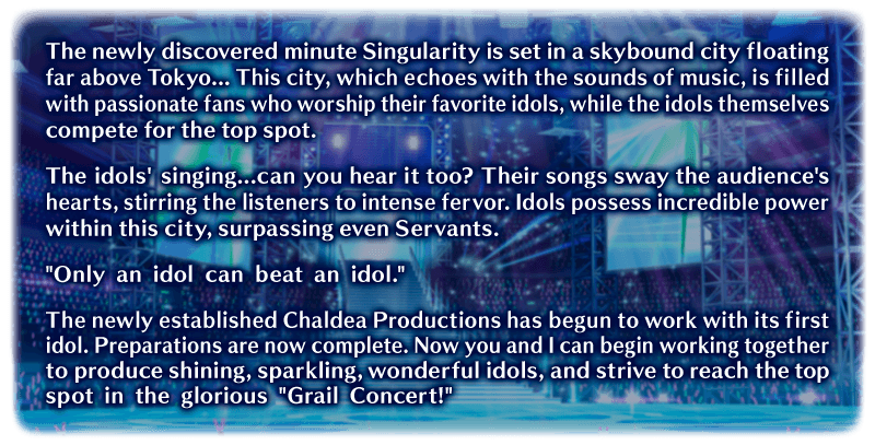 You rayshift to a miniature Singularity where idols have won the hearts of many and possess immense power.