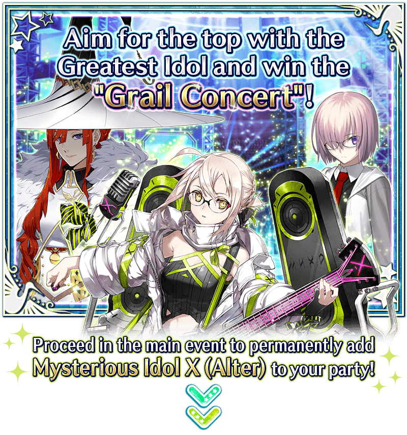 Advance in the Main Quest of this event to temporarily add Event Limited Servant "★4 (SR) Mysterious Idol X (Alter)" to your roster!