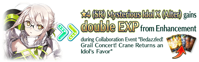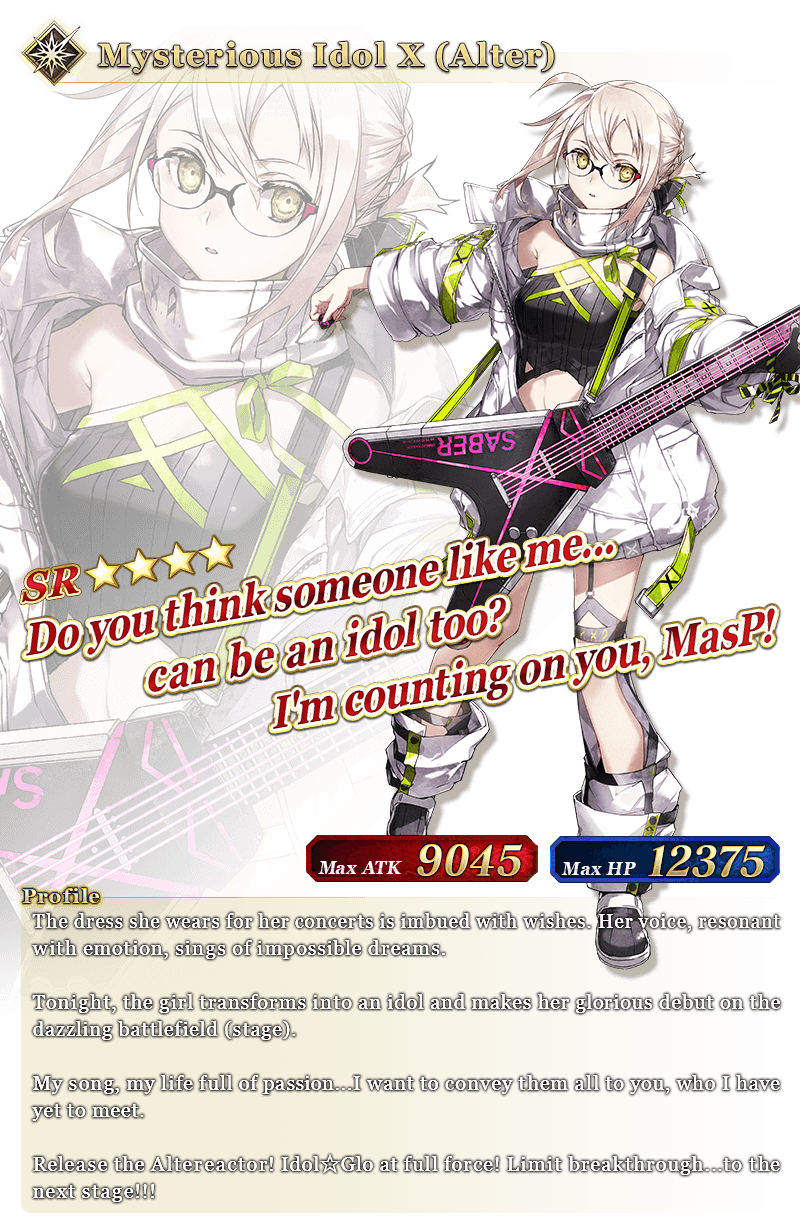 * During the event period, Event Limited Servant "★4 (SR) Mysterious Idol X (Alter)" cannot be sold, used as Enhancement material, or moved to the Second Archive.