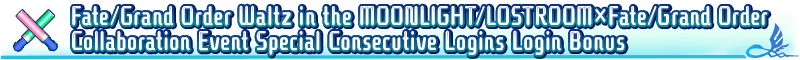 We are holding a special Consecutive Logins Login Bonus to celebrate the release of Fate/Grand Order Waltz in the MOONLIGHT/LOSTROOM×Fate/Grand Order Collaboration Event.