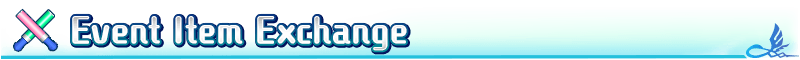 Event items can be exchanged for the following items through "Event Item Exchange," accessible from the "Event Rewards" button in the upper right corner of the Terminal.