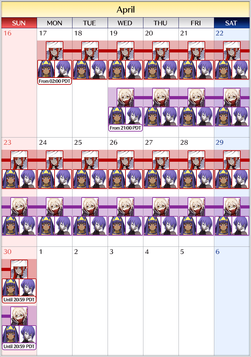 * The following Servants will only be summonable from their specific Pickup summons. Please confirm the Pickup Servant before summoning.