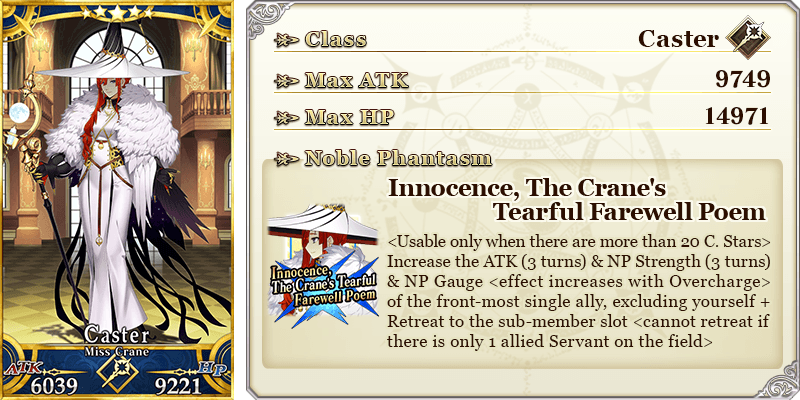 See "★5 (SSR) Miss Crane" in action on YouTube, where we're sharing an exclusive video of her Noble Phantasm!