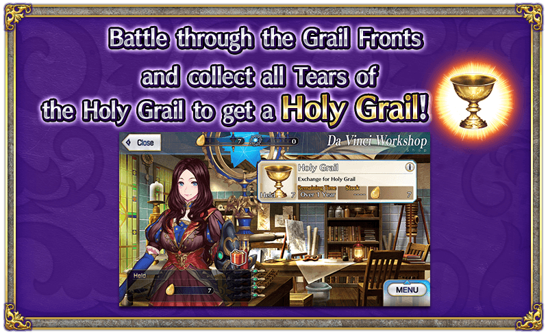 Win all seven Grail Fronts to collect seven Tears of the Holy Grail and exchange them for a Holy Grail!
