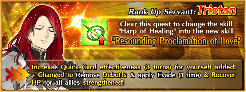 "Servant Rank Up Quests" to strengthen "★5 (SSR) Altria Pendragon (Lancer)" and "★4 (SR) Tristan" will be permanently added to Chaldea Gate.