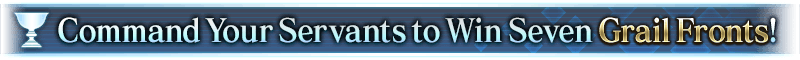 A new "Grail Front" will be unlocked each day during the event. In each Grail Front, Masters and Servants divided into enemies and allies will battle multiple times on a special battlefield. |