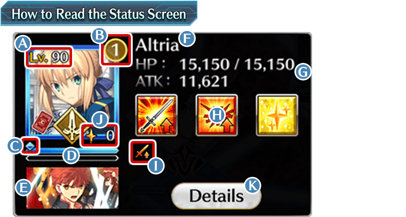 Touch and hold an ally Servant's icon to display their Servant Details screen.