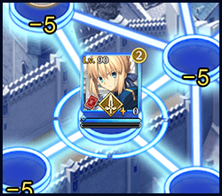 In the example above, one ally Servant and one enemy Servant are in spaces next to the target of the attack. This attack will begin a two versus two battle.