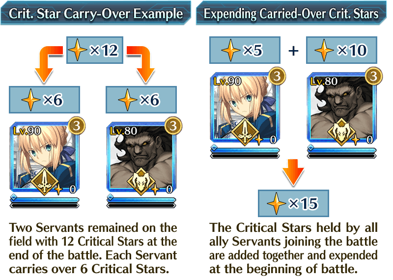 When multiple Servants holding Critical Stars join the same battle, each Servant's Critical Stars are added together at the beginning of battle.