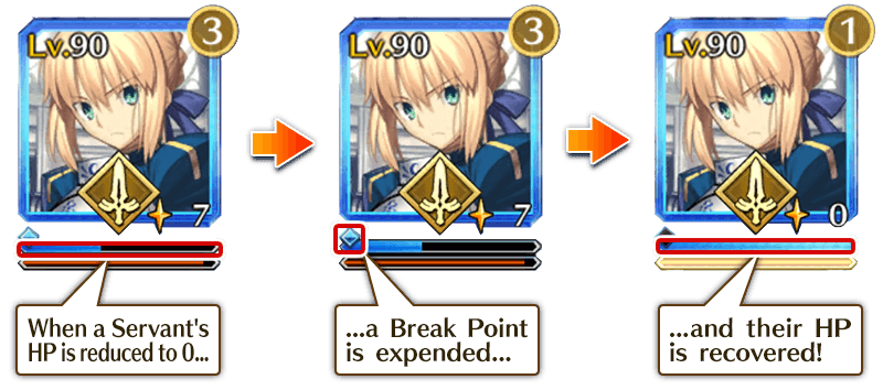 In Grail Front battles, Servants have Break Points, which are expended when their HP reaches 0.
