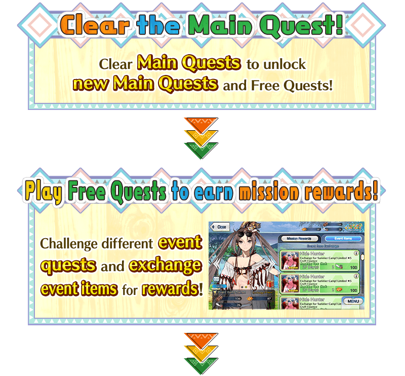 As you advance in the Main Quest, you will unlock Free Quests, which you can complete to collect Event Items. Additional Free Quests will be unlocked when the preceding Main and Free Quests have been completed.