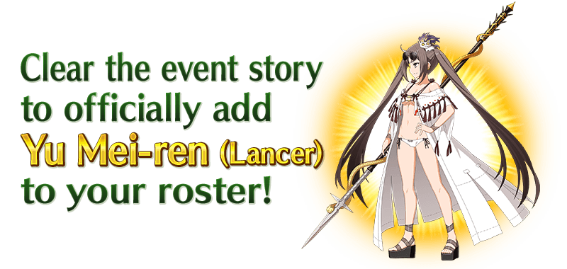 Permanently add the Event Limited Servant "★4 (SR) Yu Mei-ren (Lancer)" to your roster by clearing the Main Quest unlocked at a later date!