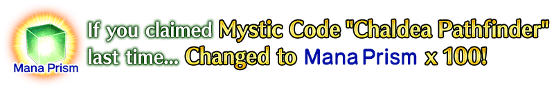 * 100 Mana Prisms will be awarded instead if you already own the Mystic Code "Chaldea Pathfinder".