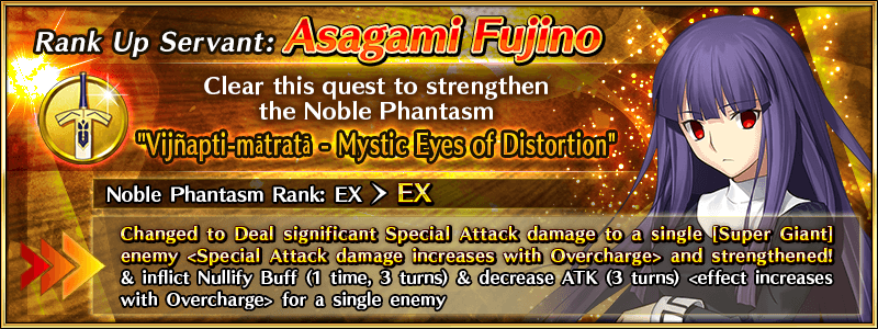A "Servant Rank Up Quest" to strengthen "★4 (SR) Asagami Fujino" will be permanently added to Chaldea Gate.