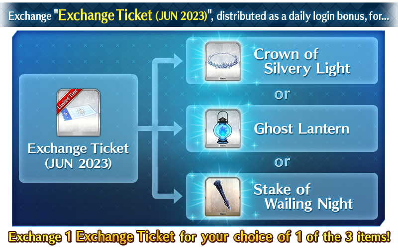 The "Exchange Ticket (JUN 2023)" distributed as a daily login bonus will be exchangeable for the following items.