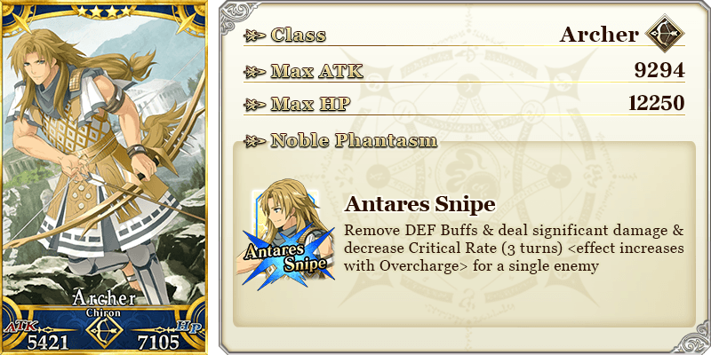 ★★★★★SSR Witchcraft ATK 500 (MAX: 2000) HP 0 Skill Increase Buster Card effectiveness by 10% & Critical Strength by 10% & NP Gain by 15% for yourself |