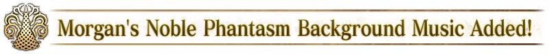 Once you clear Part 2 Chapter 6 "Lostbelt No.6: Fae Round Table Domain, Avalon le Fae - The Moment a Planet Is Born" (Act II), new BGM will play during "★5 (SSR) Morgan"'s Noble Phantasm.