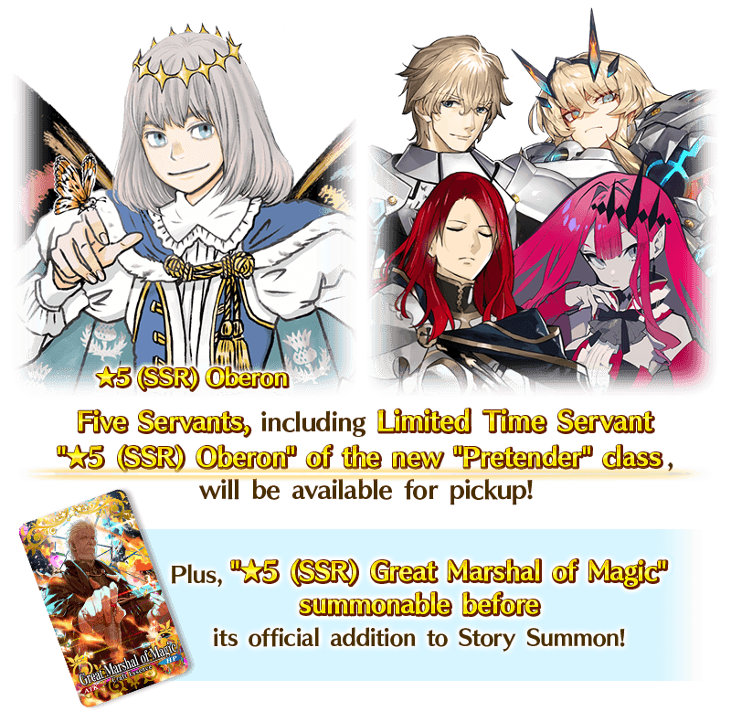 The Moment a Planet Is Born", five Servants, including Limited Time Servant "★5 (SSR) Oberon" of the new "Pretender" class, will be available for pickup!