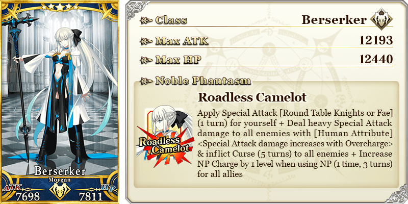 * The game music played during the Noble Phantasm animation for "★5 (SSR) Morgan" will change after clearing a certain Main Quest in Part 2 Chapter 6 "Lostbelt No.6: Fae Round Table Domain, Avalon le Fae - The Moment a Planet Is Born".