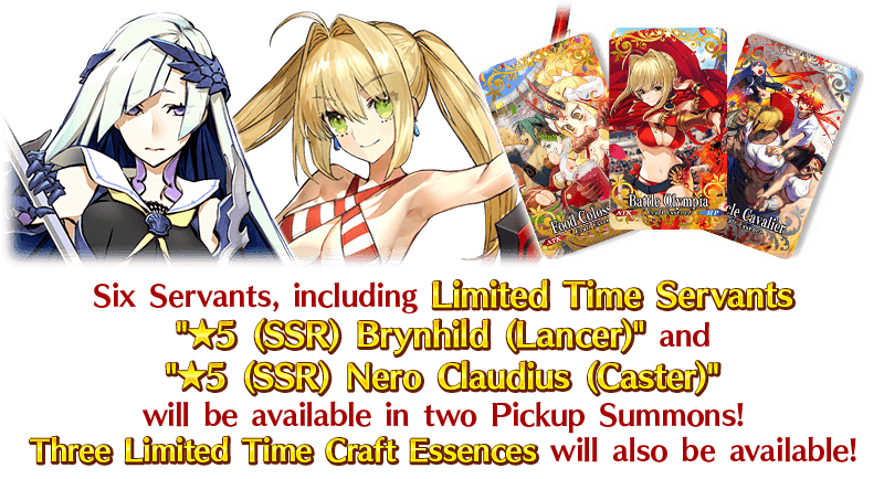 During the Pickup Summon period, the Pickup Servants and Pickup Craft Essences will have an increased drop rate!