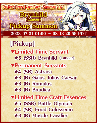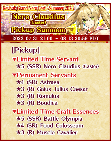 "Revival: Grand Nero Fest - Summer 2023 Pickup Summon" Schedule: