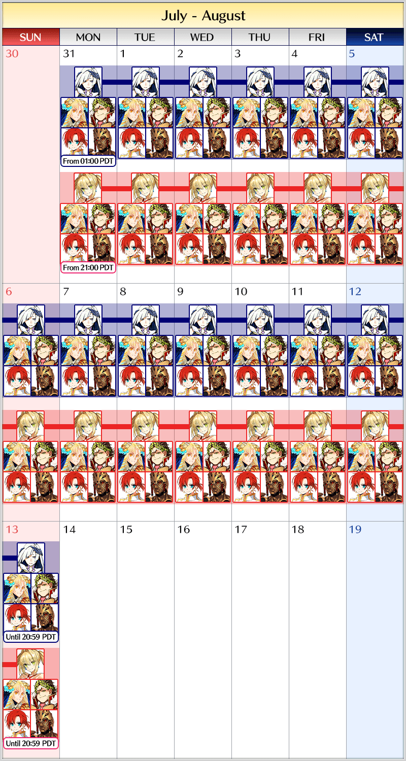 - If multiple Limited Time Pickup Summons are available at once, the number of summons you have performed will be counted individually for each Pickup Summon (each page on the Summon Screen). In addition, summons will be counted individually for each Summon Period that the Pickup Lineup changes for a Daily Pickup Summon. For example, in a Daily Pickup Summon where the Pickup Lineup changes each day at 21:00 PDT (GMT -7), your summon count will be reset at the moment the Pickup Lineup changes.