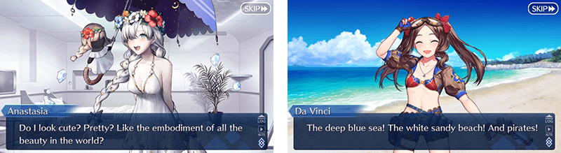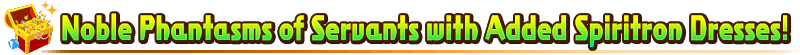 * The Spiritron Dresses will change the appearance and some voice lines for "★5 (SSR) Achilles", "★3 (R) Mandricardo", and "★2 (UC) Edward Teach".