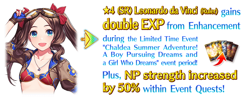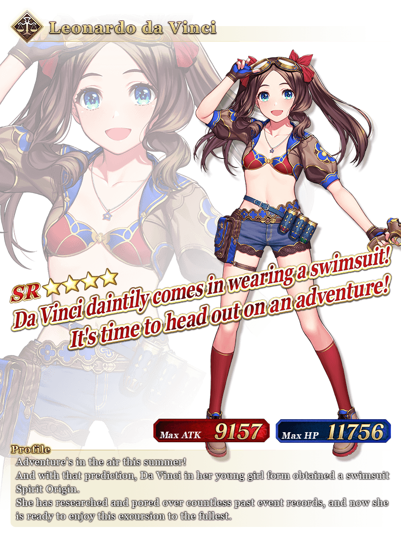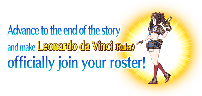 Clear the Main Quest to permanently add Event Limited Servant "★4 (SR) Leonardo da Vinci (Ruler)" to your roster.