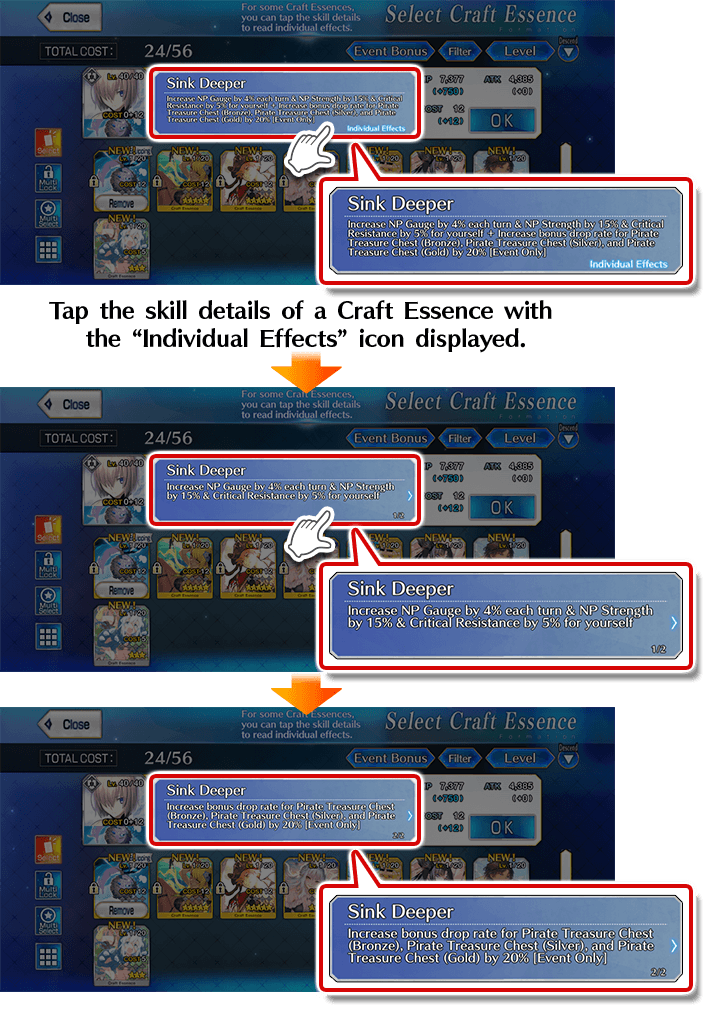 Select a Craft Essence with multiple skills and tap the skill details to view individual skill effects.