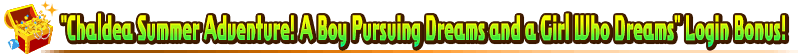 Since you were able to achieve 25,000 total reactions in the "'Chaldea Summer Adventure! A Boy Pursuing Dreams and a Girl Who Dreams' Release Celebration Social Media Campaign", we'll be distributing a special login bonus!