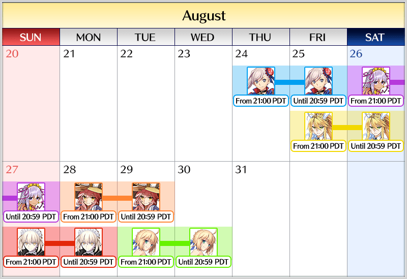"Revival Swimsuit Servants Pickup Summon" Schedule: