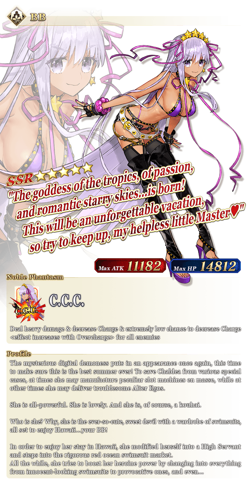 In addition, the following 30 Limited Time Craft Essences originally available in the 2018-2022 Limited Time Summer Events will be the only Craft Essences summonable in the "Revival Swimsuit Servants Pickup Summon"!