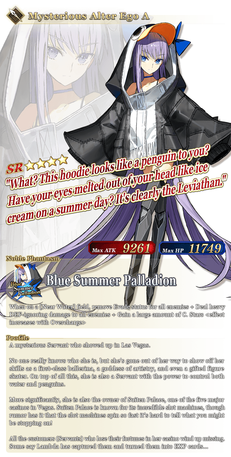 * Please note that while this Servant's name is "Mysterious Alter Ego Λ", her class is Lancer.