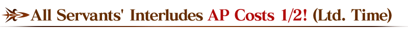 For the following period, Interludes for all Servants will have 1/2 AP costs!