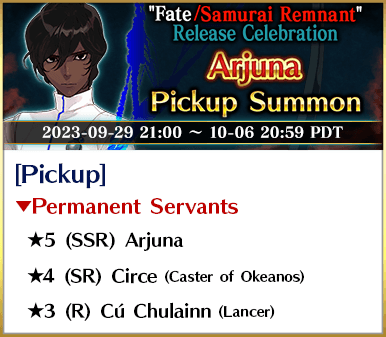 * The following Servant(s) will only be summonable from their specific summons. Please confirm the Pickup Servant before summoning.