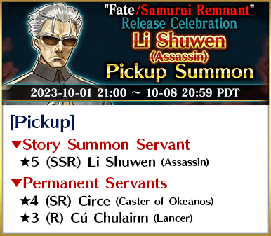 * The following Servant(s) will continue to be available through Story Summon after the Pickup Summon period ends.
