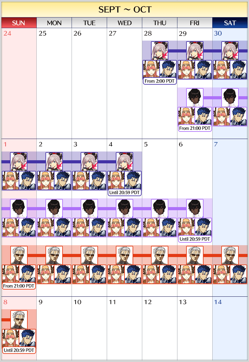 * Bonus Summons will be calculated separately for each Summon Lineup. * Please note that the Summon Period for each Pickup Summon will differ. * In this Summon, only the Pickup ★5 (SSR) Servant in each individual Summon will be eligible for the "Guaranteed Summon" feature.
