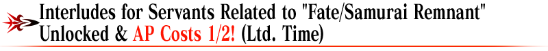 In addition, the AP costs of applicable Servants' Interludes will be halved for the campaign period!