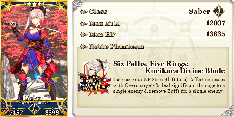 - ★5 (SSR) Miyamoto Musashi (Saber)