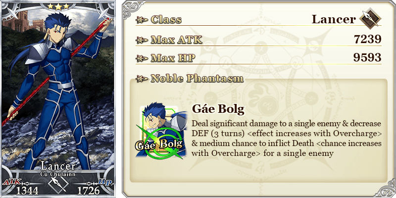 * The name displayed for Servants whose True Names are hidden will change based on story progression. In some cases, the name displayed for their Noble Phantasm will also change.