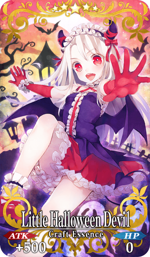 ★★★★★SSR Little Halloween Devil ATK 500 (MAX: 2000) HP 0 Skill Increase NP Gain by 20% & begin battle with NP charged at 50% for yourself |