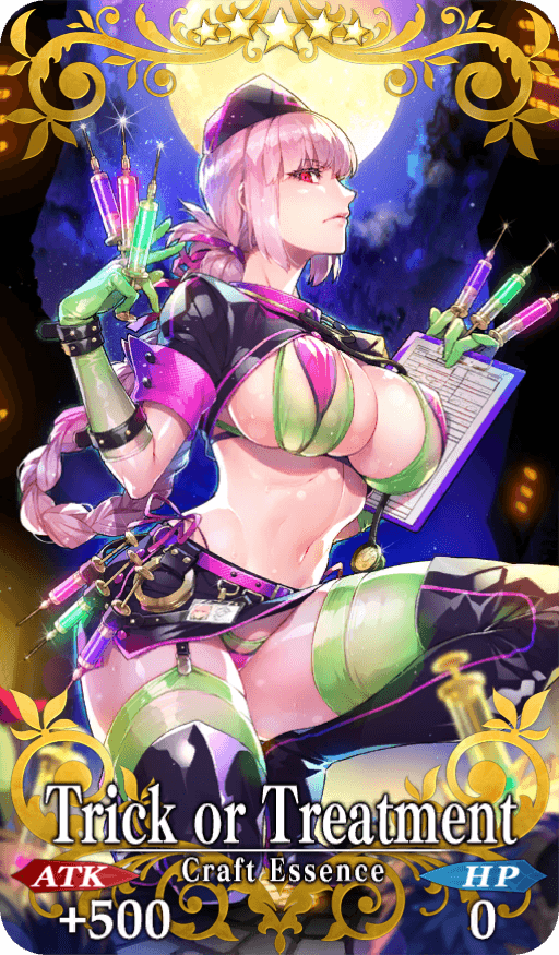★★★★★SSR Trick or Treatment ATK 500 (MAX: 2000) HP 0 Skill Increase NP Gain by 25% & Critical Strength by 15% for yourself |