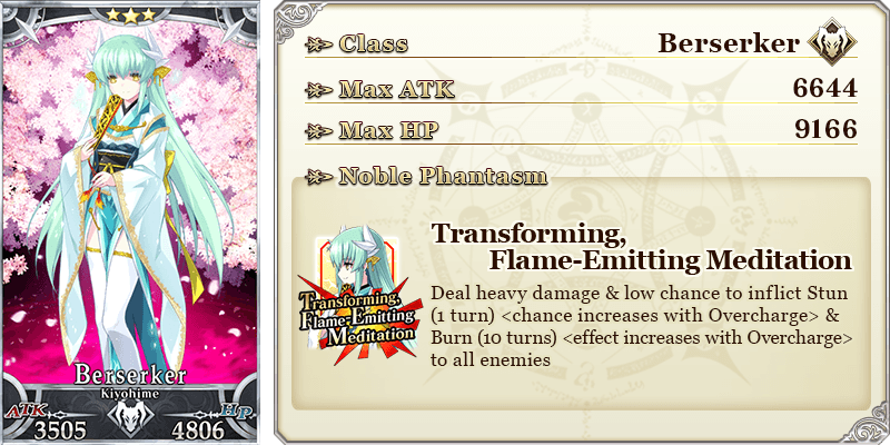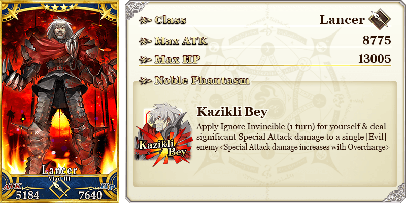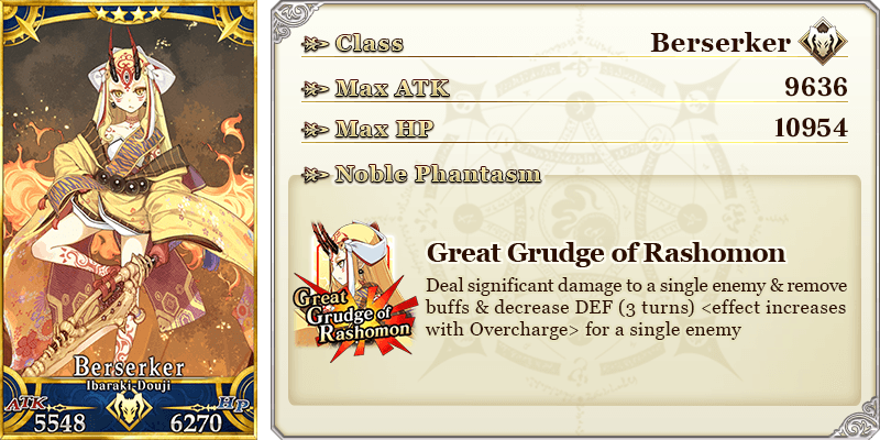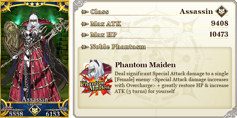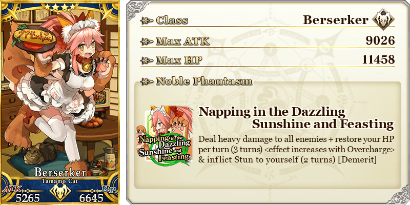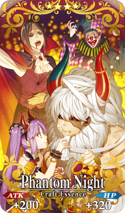 ★★★★SR Phantom Night ATK 200 (MAX: 750) HP 320 (MAX: 1200) Skill Increase Buster Card effectiveness by 10% & NP Gain by 5% for yourself |